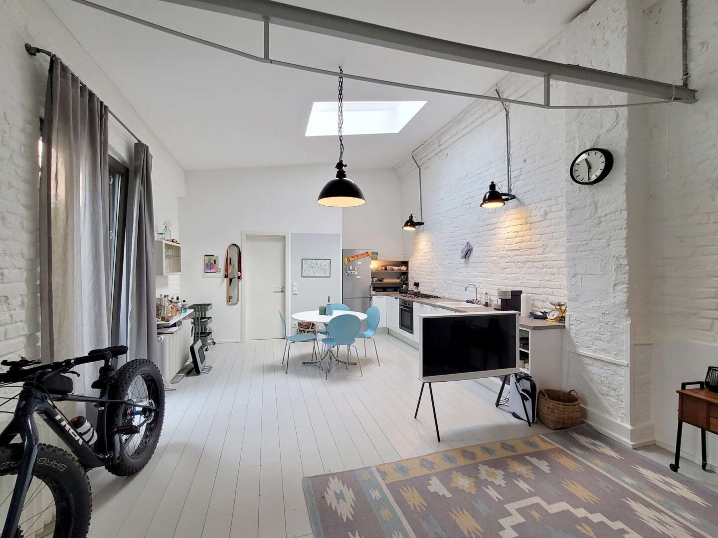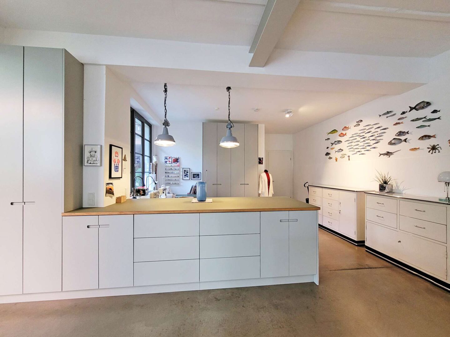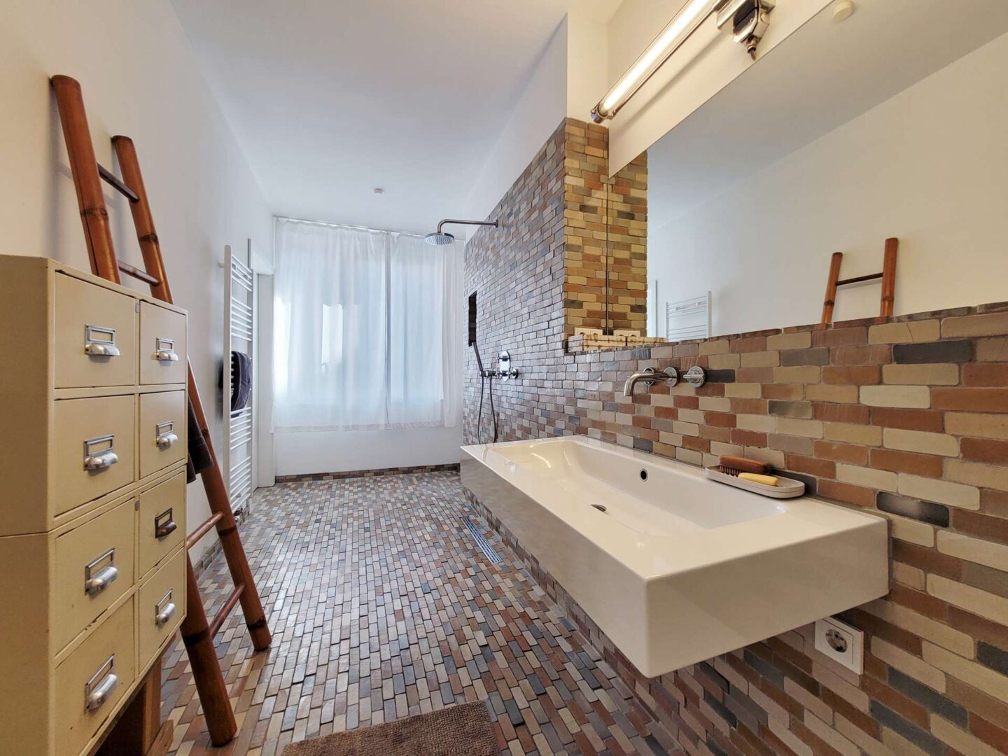 Über den Hinterhof, abseits von Straßenlärm, betreten Sie die großzügige Loft-Wohnung im Erdgeschoss. Über das Entree mit Garderobe gelangen Sie in den weitläufigen Wohnraum, der Küche, Essbereich, Wohnzimmer und einen stilvollen Arbeitsbereich nahtlos miteinander verbindet. Hier können Sie kulinarische Kreationen zubereiten, entspannen und gleichzeitig arbeiten - ein Raum für jede Lebenslage. Große Fensterflächen sorgen für einen lichtdurchfluteten Raum und geben den Blick in den üppig begrünten Innenhof frei. Zahlreiche optische Highlights wie eine Stahlwendeltreppe, offenes Mauerwerk sowie 3 m hohe Decken mit offenen Stahlträgern verleihen dem Raum seine ganz besondere Atmosphäre. Über eine große Schiebetüre haben Sie Zugang zur Terrasse. Große, parallel zueinander verlaufende Fensterfronten im Entree und Wohnzimmer verbinden die Terrasse optisch mit dem Innenraum. Ein gemütliches Gästezimmer, welches alternativ auch als Büro genutzt werden kann, rundet das Raumangebot im Erdgeschoss ab.