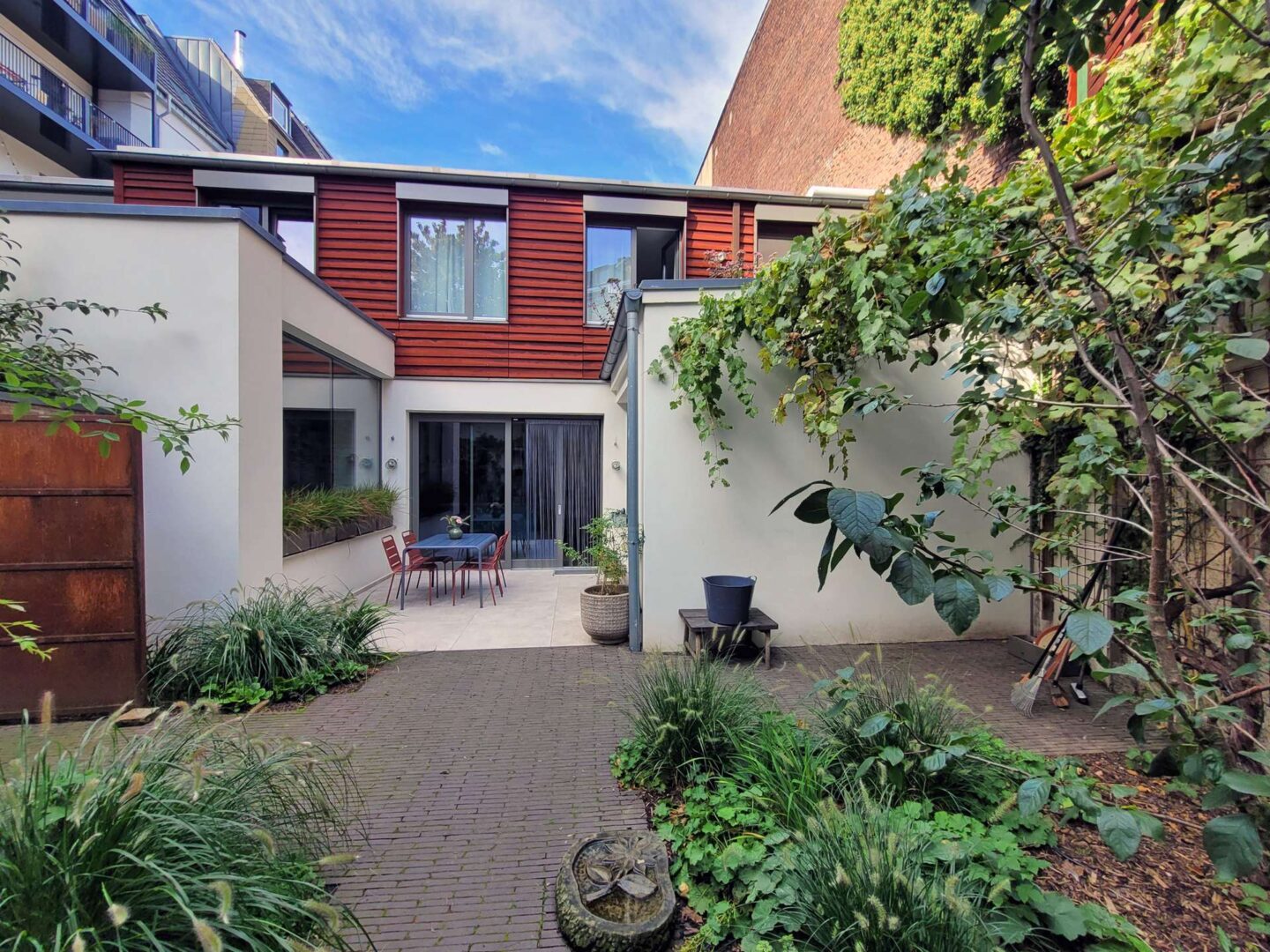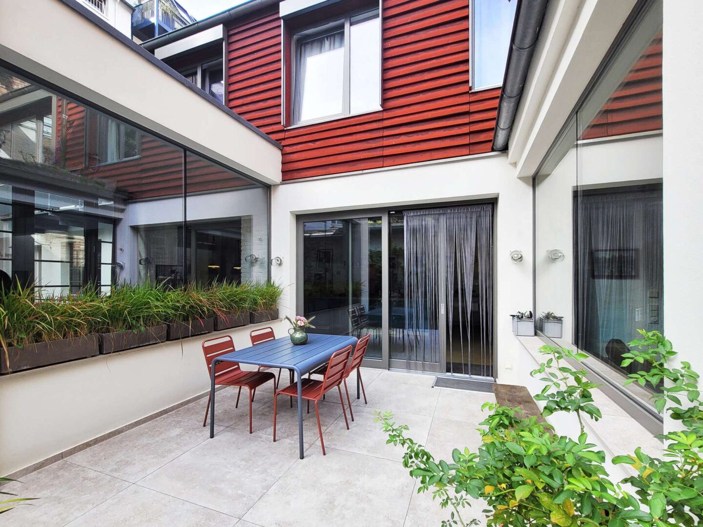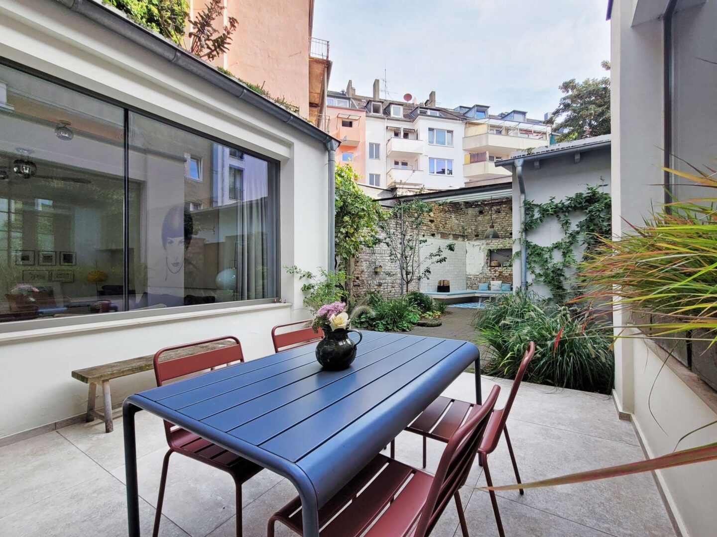 Ein absolutes Highlight dieser Immobilie sind die vielfältigen Terrassen- und Gartenflächen im Innenhof. Hier können Sie die warmen Sonnenstrahlen genießen, gesellige Abende mit Freunden verbringen oder einfach nur die Ruhe inmitten der Stadt erleben.