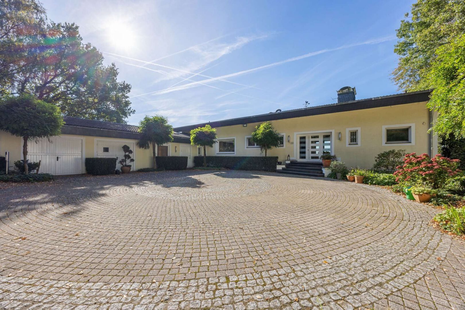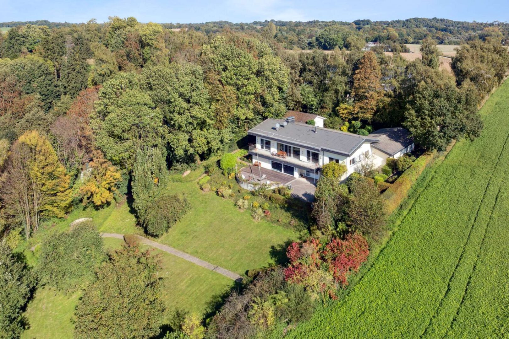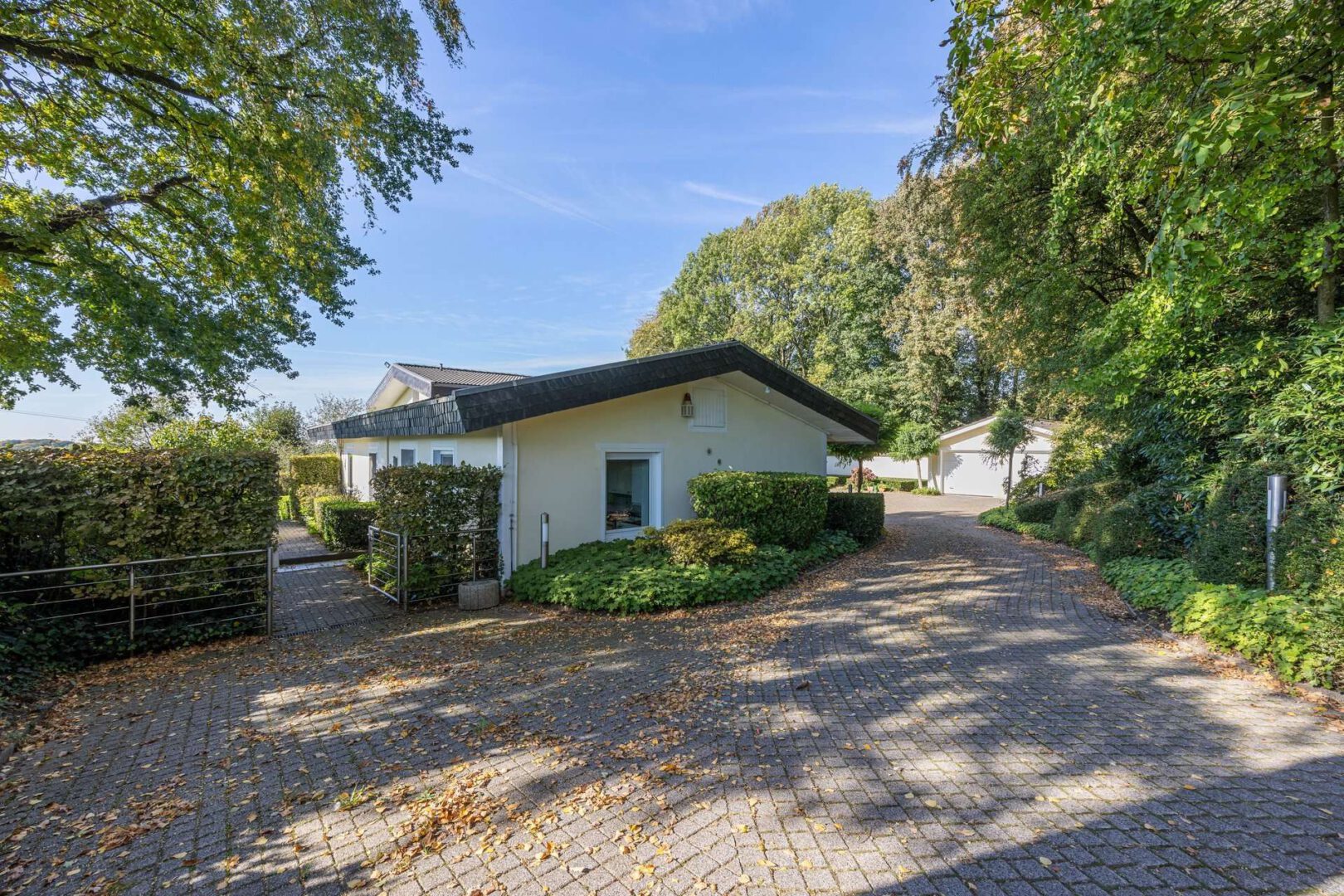 In bevorzugter, ländlicher Lage von Düsseldorf - Hubbelrath präsentiert sich dieses Anwesen auf einem ca. 5.678 m² großen, sonnigen Hanggrundstück mit Süd-/West-Ausrichtung. Das Haupthaus (Baujahr 1973) wurde 1998/1999 umfangreich renoviert und bietet zusammen mit der Einliegerwohnung im Anbau eine Wohnfläche von insgesamt ca. 411 m². Weitblick, viel Privatsphäre und großzügige Außenflächen prägen das Gesamtbild.