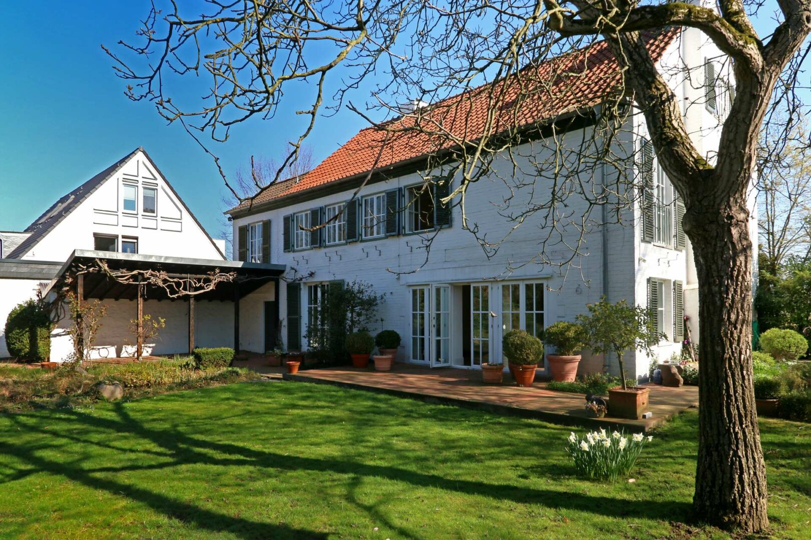 Das Landhaus liegt auf einem großen, alteingewachsenen Gartengrundstück mit Teichanlage in bevorzugter Lage von Meerbusch – Büderich und bietet einen herrlichen Fernblick über die Feld- und Wiesenlandschaft von Meerbusch. Die Immobilie im französischem Landhausstil bietet ihren Bewohnern eine Wohnfläche von knapp 250 m² verteilt auf sieben Zimmer plus Ausbaureserven im Dachgeschoss. Verwirklichen Sie Ihren eigenen Traum vom Wohnen in familienfreundlicher Lage mit unverbaubarem Weitblick über das angrenzende Naturschutzgebiet bis hin zum Rhein.