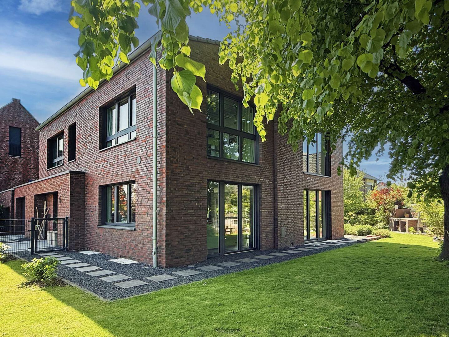 Das moderne, energieeffiziente Einfamilienhaus befindet sich in einer der begehrtesten Lagen von Meerbusch – ruhig, grün und nur wenige Schritte vom Rhein entfernt. Die Immobilie wurde in hochwertiger Massivbauweise mit einer weißen Wanne errichtet und überzeugt durch eine zeitlos elegante Architektur. Die Fassade aus traditionellem Torfbrandklinker unterstreicht den hochwertigen Charakter des Hauses. Im Inneren erwartet Sie eine großzügige, offene Raumgestaltung mit großen Fensterflächen, hohen Decken, lichtdurchfluteten Räumen und einem Wohnbereich, der sich nahezu über das gesamte Erdgeschoss erstreckt.