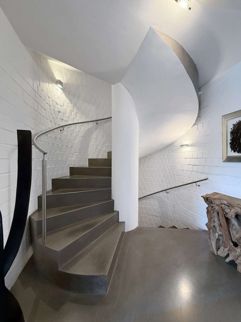 Im Obergeschoss setzt sich die exklusive Architektur fort: Eine offene Galerie mit Glas- Edelstahlgeländer bietet einen spektakulären Blick in den Wohnbereich. Zwei Zimmer mit begehbarer Empore lassen sich flexibel als Kinder-, Arbeits- oder Gästezimmer nutzen. Die großzügige Mastersuite ist mit einem Ankleidebereich und einem luxuriösem Bad en Suite ausgestattet und präsentiert sich als privates Refugium. Ein weiteres Badezimmer für den Nachwuchs komplettiert das Raumangebot auf dieser Etage.