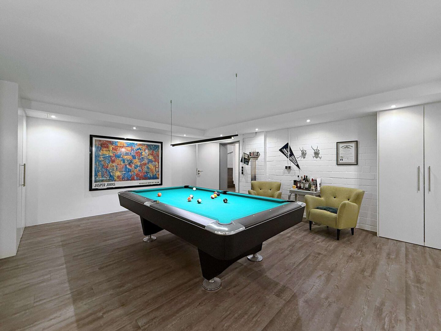 Das Untergeschoss wurde hochwertig saniert und verfügt neben den üblichen Funktionsräumen über einen großzügigen Hobby- bzw. Mehrzweckraum, der aktuell als stilvolles Billardzimmer genutzt wird.