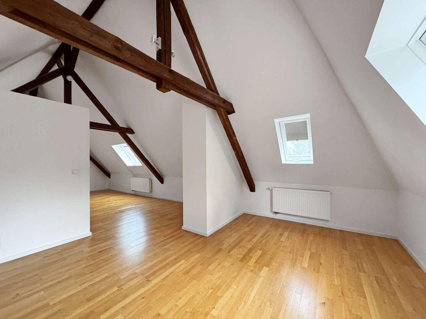 Das Dachgeschoss ist wohnlich ausgebaut und umfasst ca. 42 m² mit Studio-/Schlafzimmer und eigenem Bad – ideal für ältere Kinder, eine private Gästesuite oder ein Atelier. Eine Genehmigung als Wohnfläche ist beantragt.