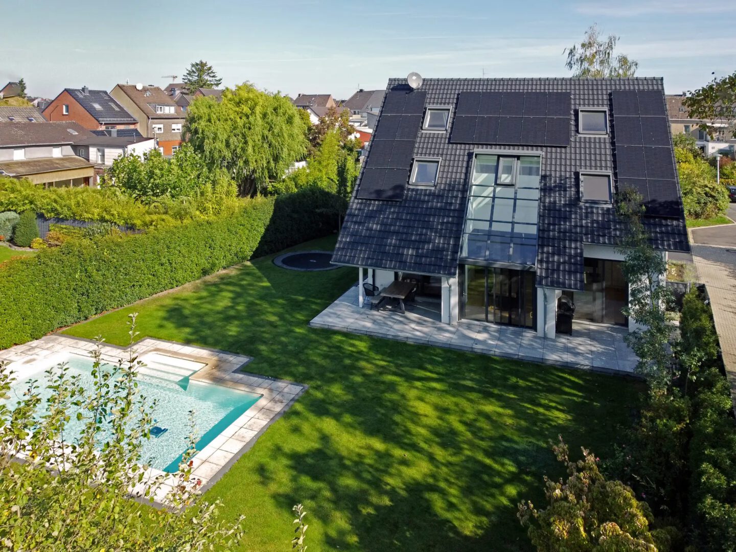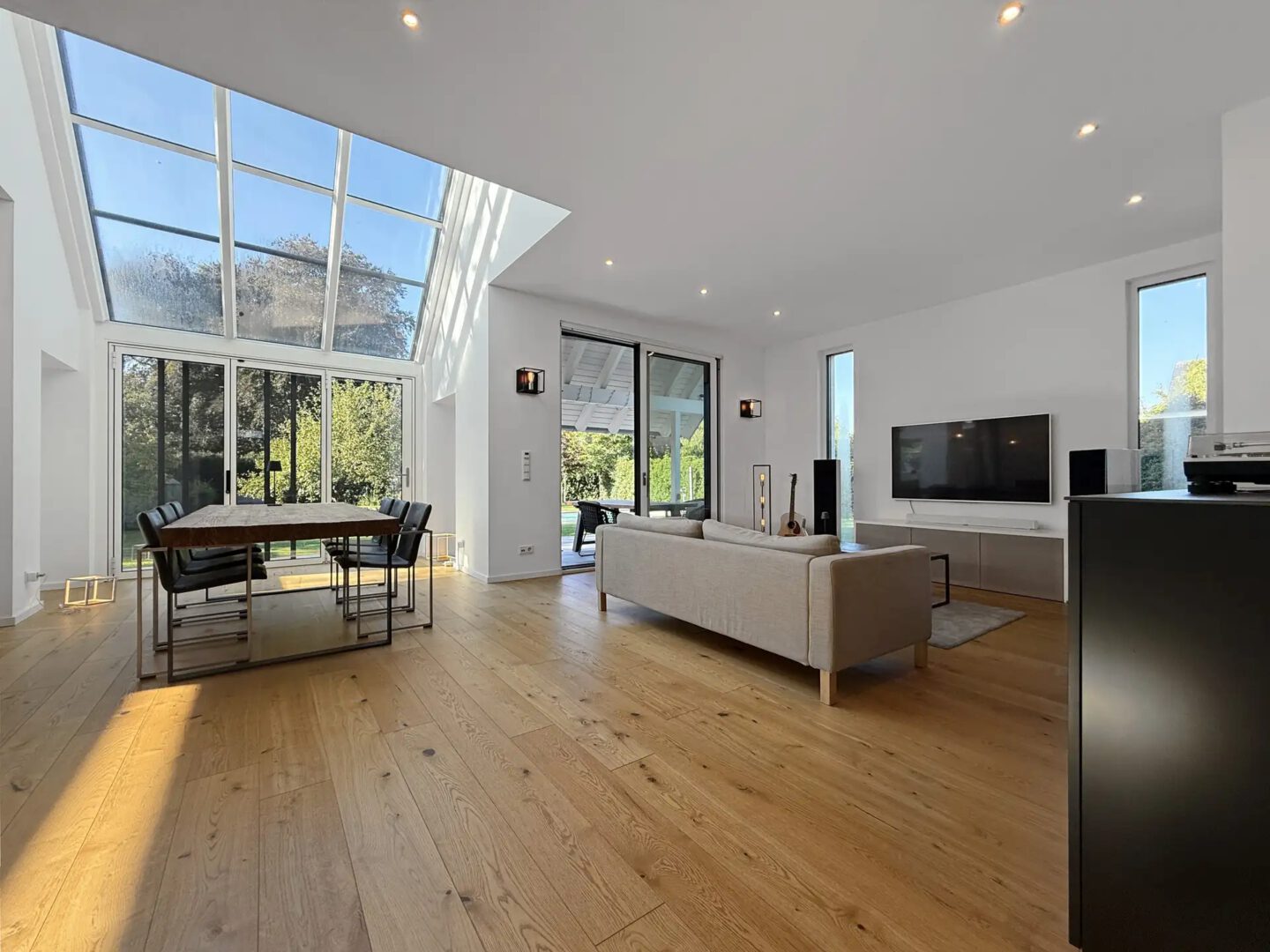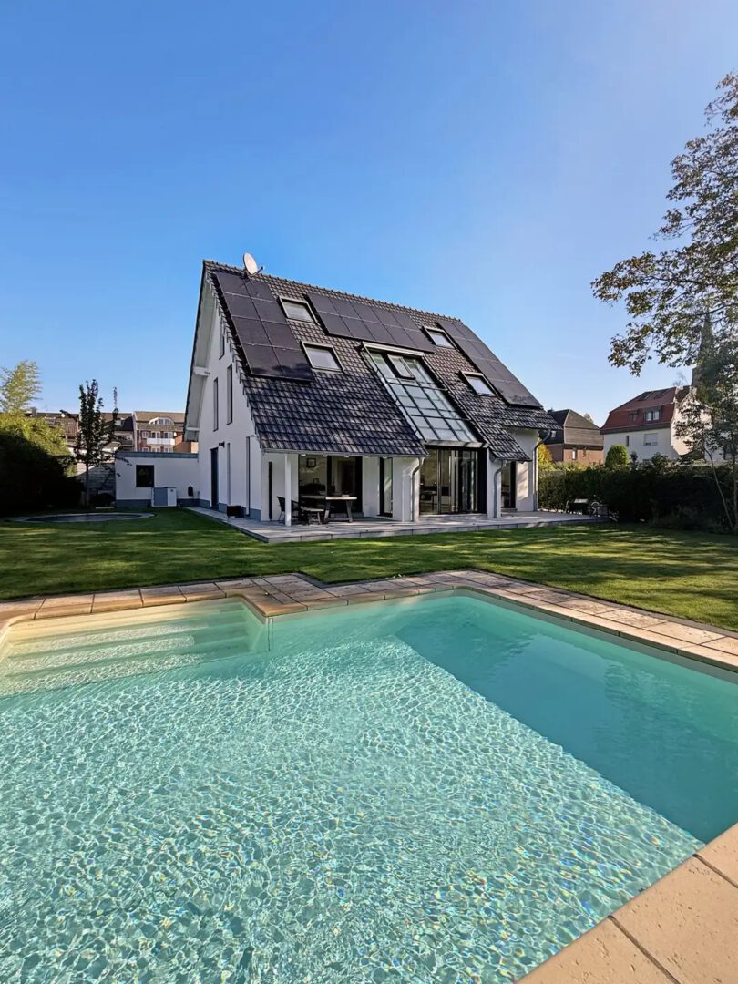 Die im Jahre 2019 errichtete Immobilie liegt auf einem ca. 1.098 m² großen Grundstück in einer ruhigen und zugleich zentralen Lage von Willich - Anrath. Das freistehende Einfamilienhaus überzeugt mit einer Wohnfläche von ca. 269 m² verteilt auf drei Etagen, einer modernen und klaren Architektur mit einer durchdachten Grundrissgestaltung sowie einer hochwertigen Innenausstattung. Dank großer Glasflächen besticht die Immobilie – selbst an bewölkten Tagen – durch helle, lichtdurchflutete Räume. Gleichzeitig bleibt das Haus dank passiver Kühlung auch im Hochsommer angenehm temperiert. Ein gepflegter Garten in Süd-West-Ausrichtung mit Außenschwimmbecken lädt zum Entspannen in Freien ein.
