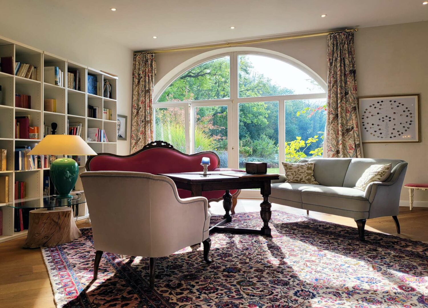 Das freistehende Einfamilienhaus liegt in der Bauernschaft Kehn innerhalb der Gutsanlage Gut Groß Lind, welche in den letzten 20 Jahren vollständig saniert worden ist. Eine Privatstraße mit repräsentativer Lindenallee führt Sie durch den 17.500 m² großen, nach Plänen des seinerzeit berühmten Landschaftsarchitekten Maximilian Friedrich Weyhe angelegten, Landschaftspark bis zu Ihrem Grundstück. Umgeben von Äckern und Wiesen und in unmittelbarer Nähe zum Forstwald lebt man hier inmitten der Natur. Nahezu alle Wege in der Umgebung sind für Reiter freigegeben und in fußläufiger Entfernung des Guts befinden sich 6 Reiterhöfe. Freunde des Golfsports können im lediglich 2 km entfernten “Golfpark Renneshof“ ihrer Leidenschaft nachgehen.