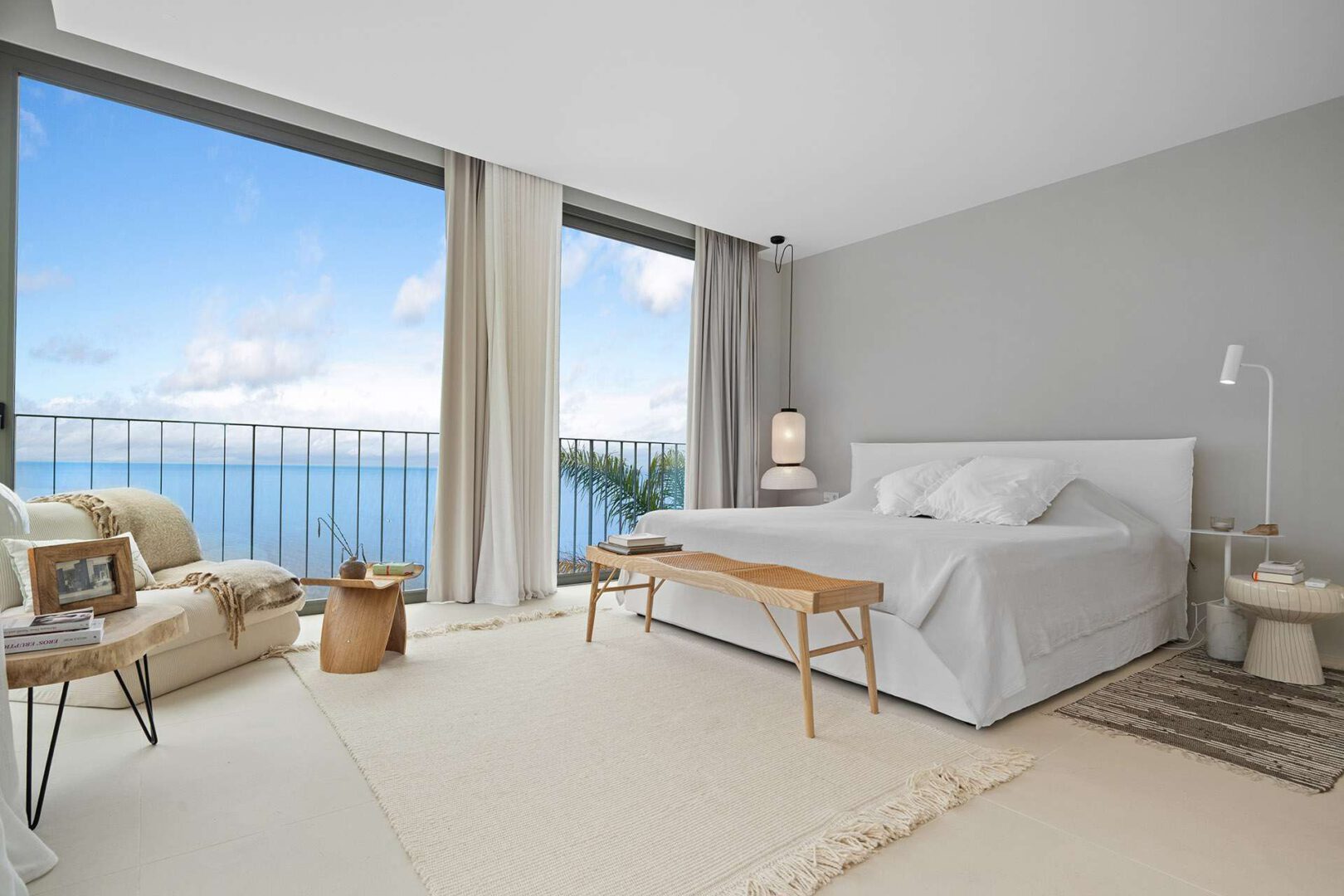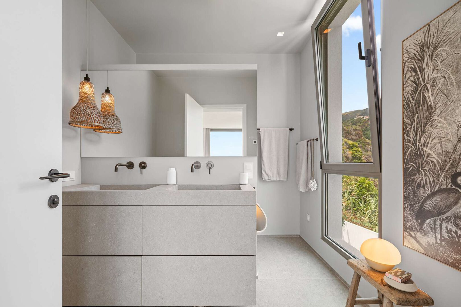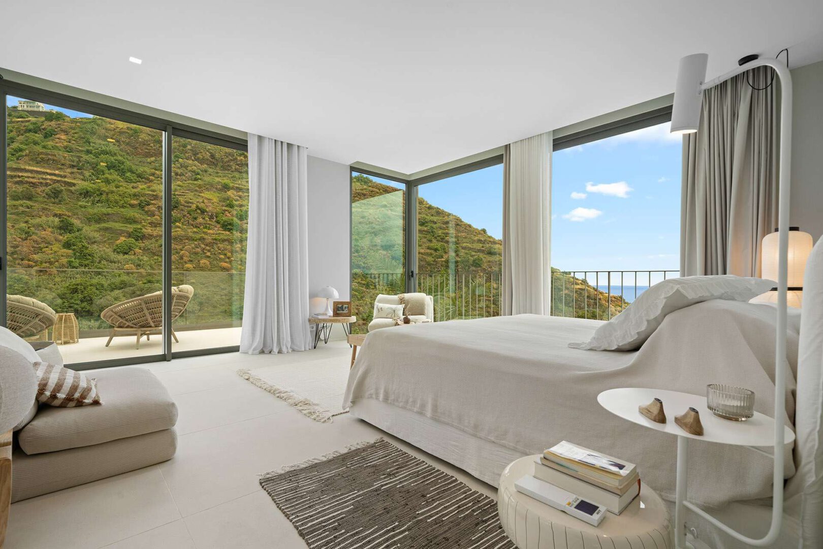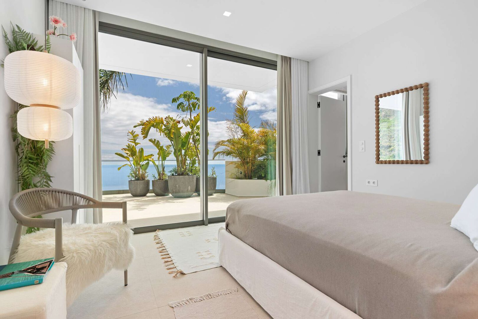 Drei großzügige Schlafzimmer – jeweils mit Bad en suite und Meerblick – bieten Komfort auf hohem Niveau. Die Hauptsuite verfügt über einen begehbaren Kleiderschrank sowie einen privaten Balkon mit Blick über das grüne Tal bis zum Atlantik.