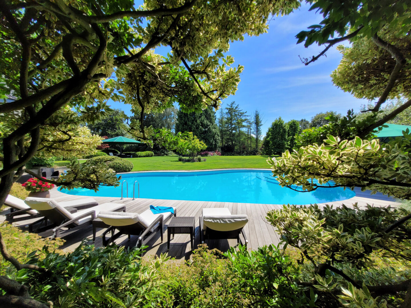 Das einzigartige Süd-West-Grundstück misst ca. 7.736 m² und ist komplett eingefriedet und bietet seinen Bewohnern eine hohe Privatsphäre. Der einladende Außenpool liegt, geschützt vor neugierigen Blicken, eingebettet in ausladenden Blumen- und Pflanzenrabatten.