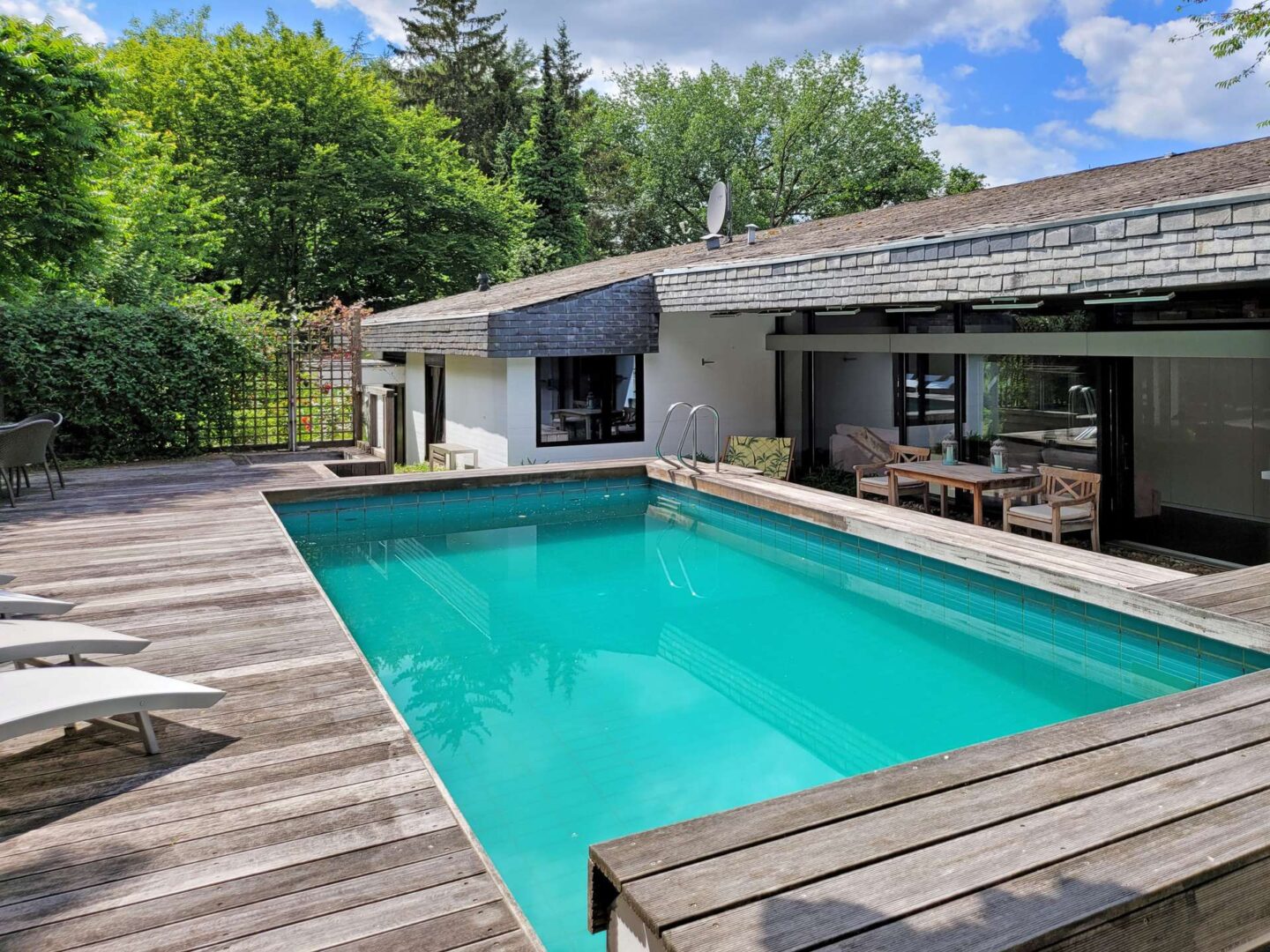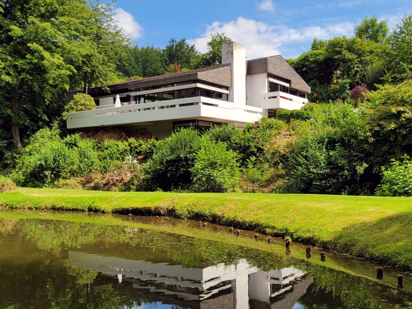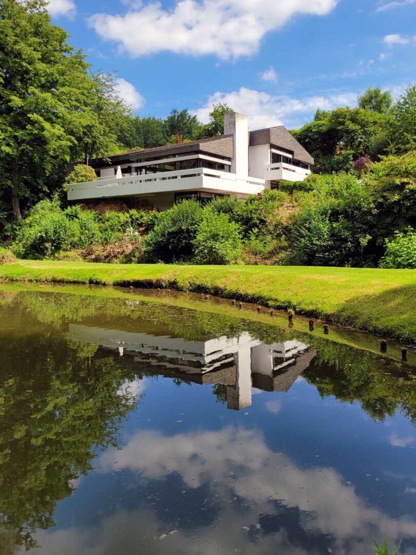 Das Anwesen liegt auf einem fast 16.500 m² großen, repräsentativen Gartengrundstück samt Badesee in einer traumhaften Naturlage von Mettmann. Das repräsentative Villengebäude aus dem Jahre 1972 bietet seinen Bewohnern eine Wohnfläche von ca. 367 m² und überzeugt insbesondere durch die architektonisch interessante Split-Level Bauart im Bauhausstil und die sich daraus ergebenden Terrassenflächen und Freisitze mit Blick auf den See. Darüber hinaus befindet sich auf dem Grundstück noch ein separates Nebenhaus (ehemaliges Hausmeisterhaus) mit 3 Zimmern, Küche, Diele und Bad.