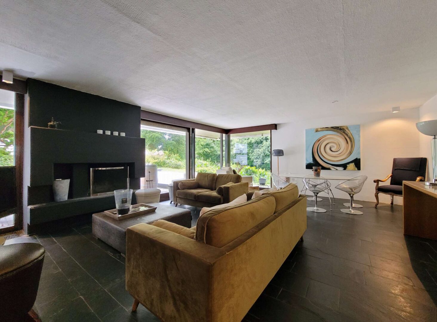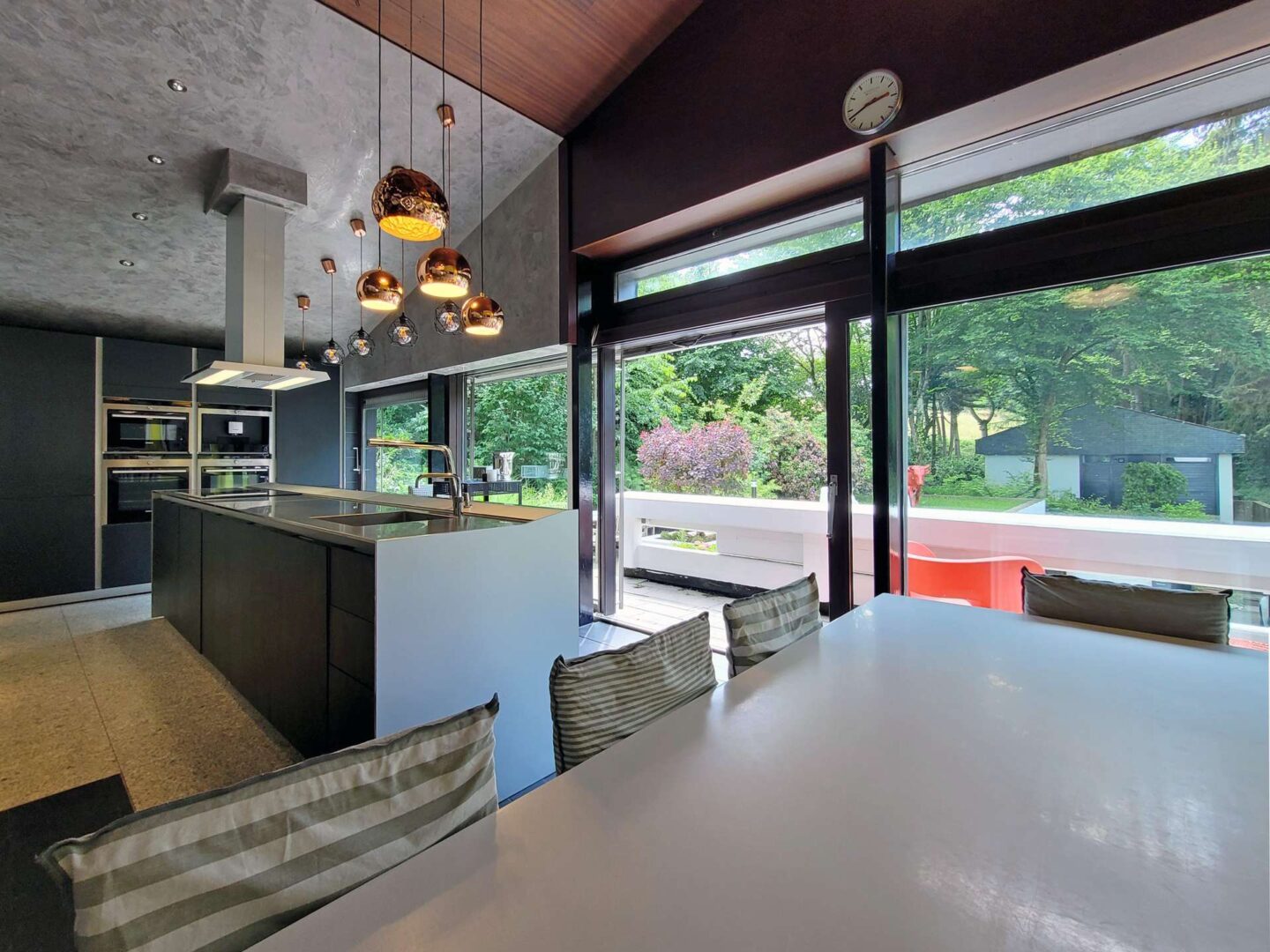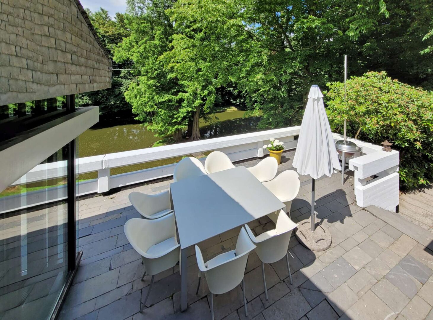 Das Anwesen liegt auf einem fast 16.500 m² großen, repräsentativen Gartengrundstück samt Badesee in einer traumhaften Naturlage von Mettmann. Das repräsentative Villengebäude aus dem Jahre 1972 bietet seinen Bewohnern eine Wohnfläche von ca. 367 m² und überzeugt insbesondere durch die architektonisch interessante Split-Level Bauart im Bauhausstil und die sich daraus ergebenden Terrassenflächen und Freisitze mit Blick auf den See. Darüber hinaus befindet sich auf dem Grundstück noch ein separates Nebenhaus (ehemaliges Hausmeisterhaus) mit 3 Zimmern, Küche, Diele und Bad.