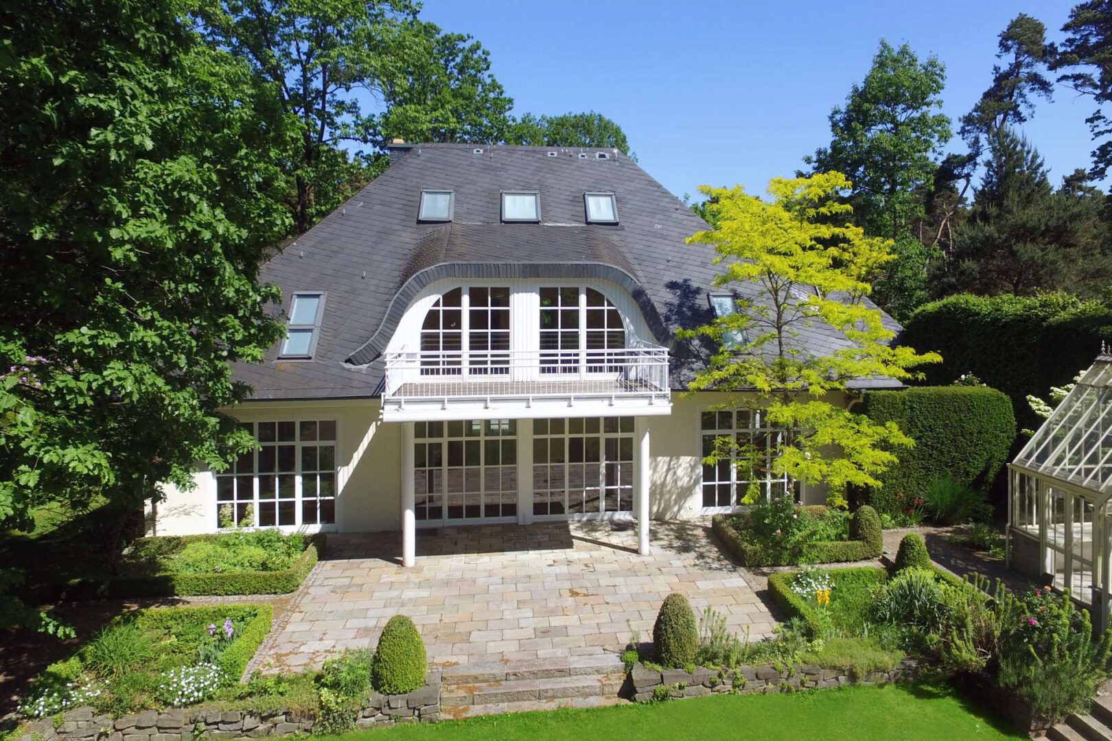 Die 2001 errichtete Villa liegt auf einem ca. 2.700 m2 großen, alteingewachsenen Grundstück in einer begehrten und ruhigen Waldrandlage von Mülheim - Uhlenhorst. Das repräsentative Anwesen wurde unter Mitwirkung eines Feng-Shui Experten geplant und zeichnet sich durch eine perfekte Symbiose von Wohnkomfort und Praktikabilität aus. Die Immobilie ist äußerst geräumig und bietet ihren Bewohnern eine Wohnfläche von 388 m² verteilt auf 9 Zimmer. Dazu kommen weitere 158 m², teils wohnlich ausgebaute, Nutzfläche. Der alteingewachsene Garten mit Terrasse wurde im englischen Stil angelegt.