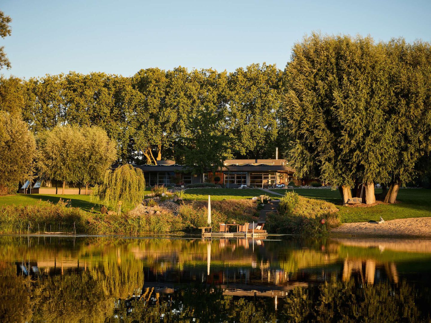 Die verglaste Front zum Garten und See verfügt in allen Räumen über Schiebetüren, durch die Sie die großzügigen Terrassen- und die Aufenthaltsbereiche am Koiteich und der Outdoorküche gelangen.