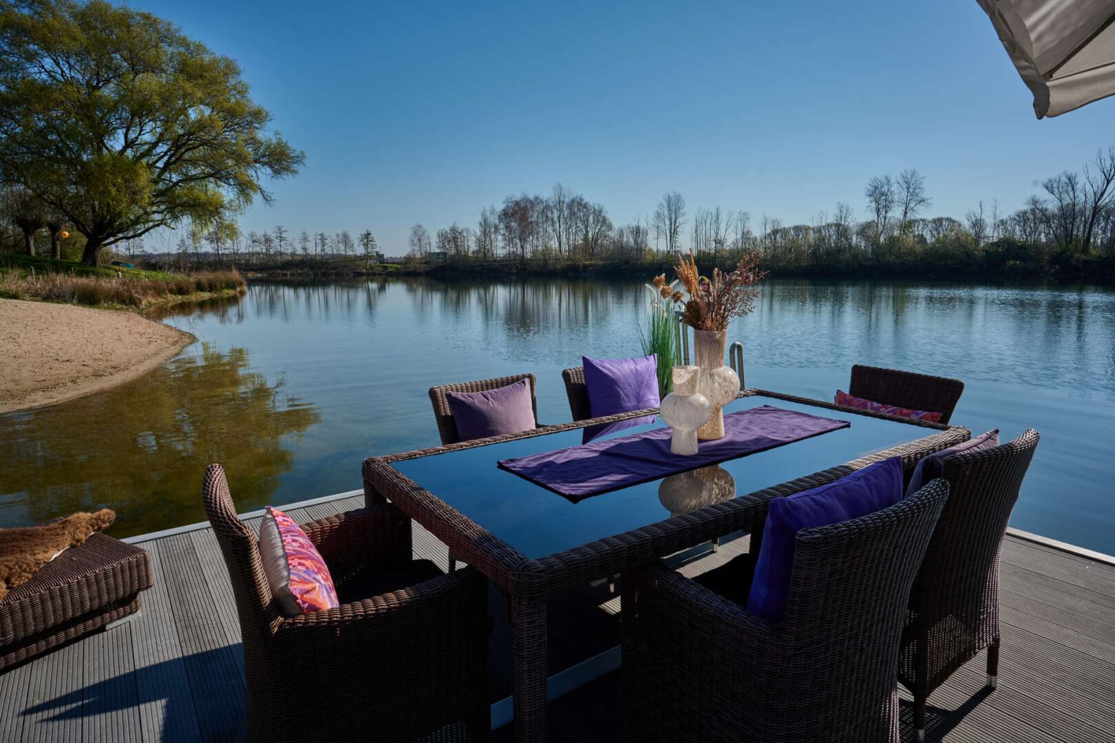 Die Außenanlagen wurden im Rahmen der Renovierungs- und Modernisierungsmaßnahmen ebenfalls komplett neugestaltet. Auf der Rückseite des Garagenanbaus befindet sich eine überdachte Terrassenfläche mit mehreren Feuerstellen und eine Außenküche, die keine Wünsche offenlässt. Vom Haus bis zum See wurde ein großzügiger Wasserlauf angelegt, der durch eine parkähnliche Anlage bis zum Seeufer samt Bootsteg führt. Der Badestrand mit Sand lässt jedes Herz höherschlagen.