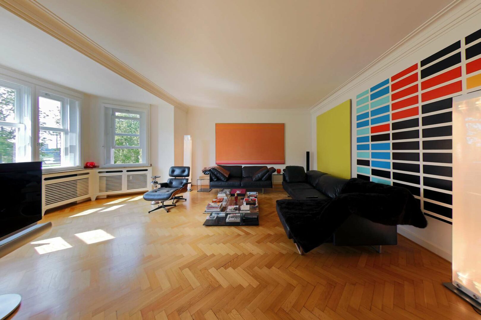Diese repräsentative Immobilie befindet sich in einem historischen, denkmalgeschützten Mehrfamilien-Eckhauses in erster Rheinlage. Die Altbauwohnung erstreckt sich über die komplette Etage. Große Fenster nach Osten, Süden und Westen sorgen für lichtdurchflutete Räume und geben den Blick ins Grüne frei. Straßenseitig genießen Sie die Aussicht über den Rheinpark auf den Rhein. Im Osten schauen Sie über den Golzheimer Platz bis hin zum Fernsehturm im Hafen und den Rheinbrücken, von den rückseitigen Loggias fällt der Blick in den parkähnlich angelegten Innenhof.