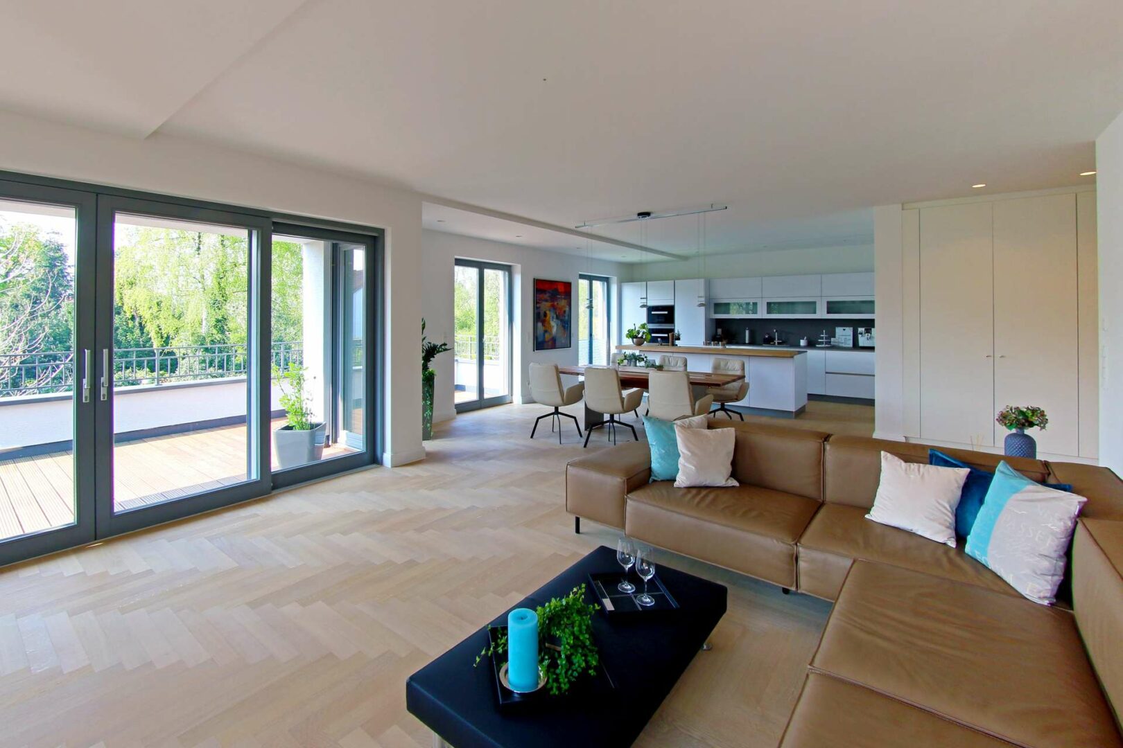 Bei der angebotenen Immobilie handelt es sich um das Penthouse eines repräsentativen Neubauobjekts mit insgesamt fünf Wohneinheiten. Die hochwertig ausgestattete Wohneinheit ist über einen Aufzug und das Treppenhaus erschlossen und verfügt über großzügige Dachterrassenflächen.